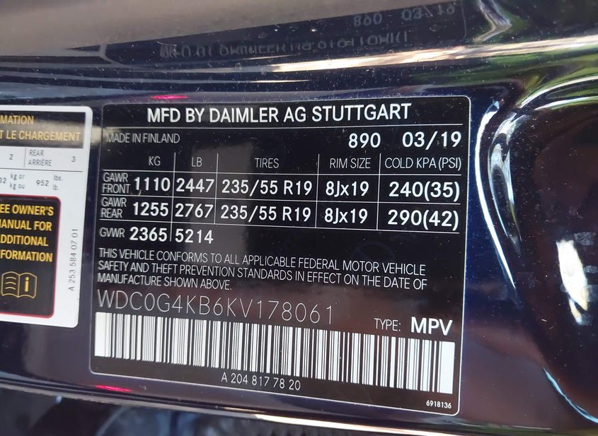 - VIN: WDC0G4KB6KV178061