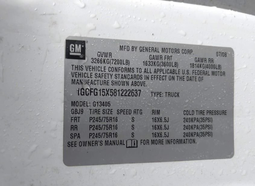 - VIN: 1GCFG15X581222637