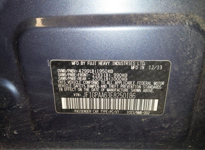 - VIN: JF1GPAA63E8250186