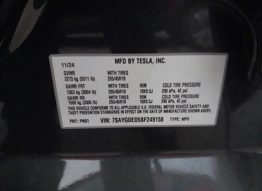 - VIN: 7SAYGDED5SF249158