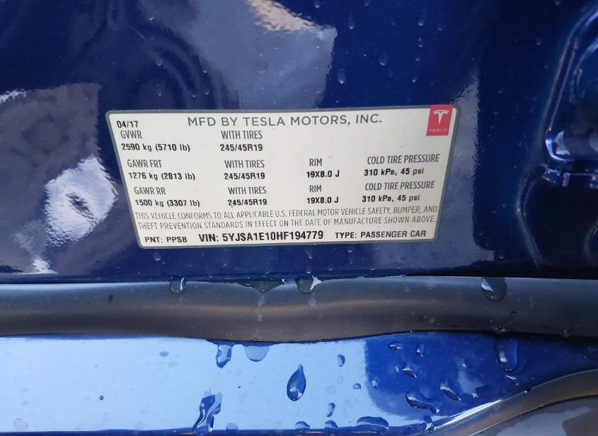 - VIN: 5YJSA1E10HF194779