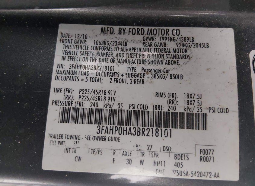 - VIN: 3FAHP0HA3BR218101