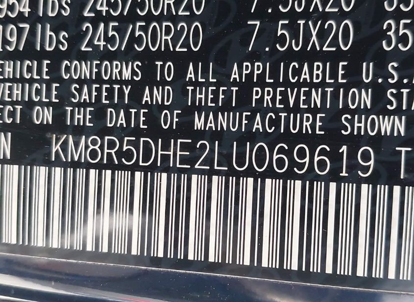 - VIN: KM8R5DHE2LU069619