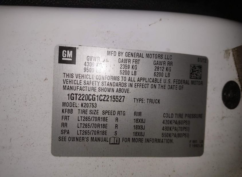 - VIN: 1GT220CG1CZ215527