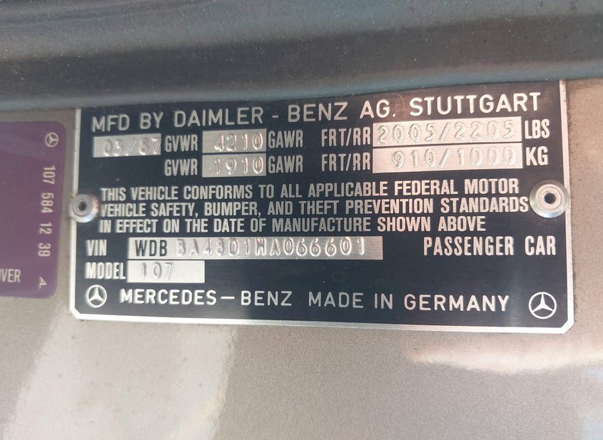 - Название лота: 1987 MERCEDES-BENZ 560 SL