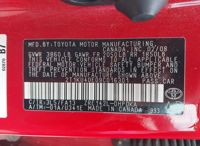 - VIN: 2T1KU40E09C016301