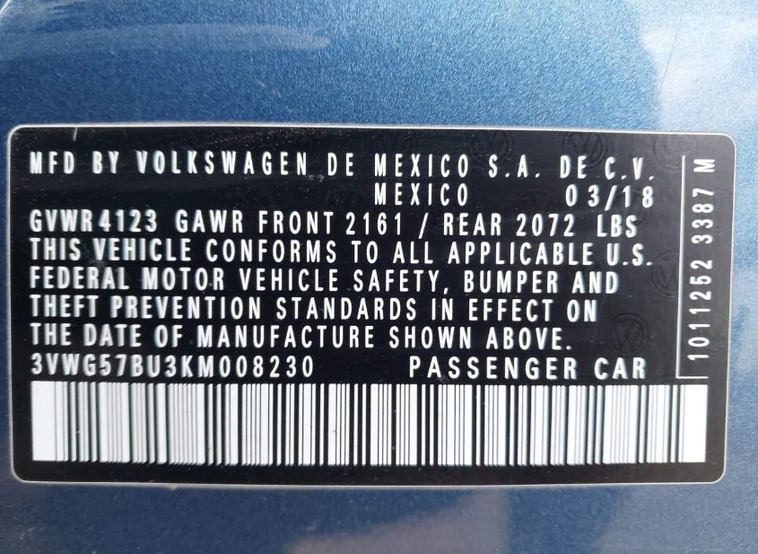 - VIN: 3VWG57BU3KM008230