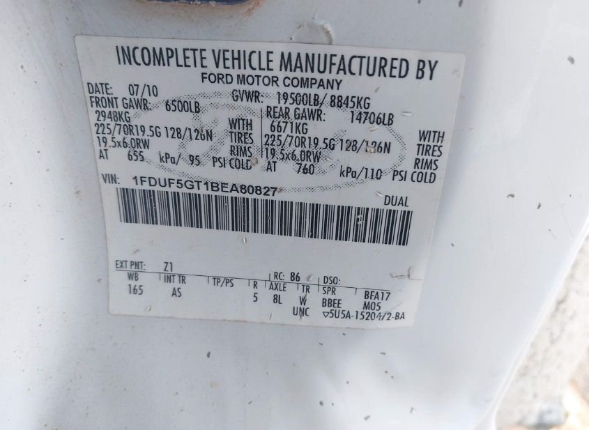 - VIN: 1FDUF5GT1BEA80827
