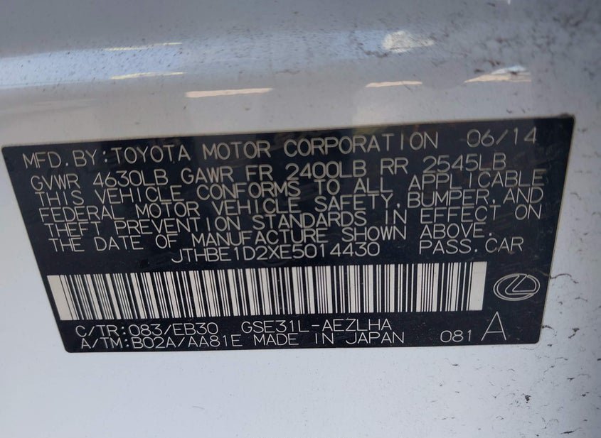 - VIN: JTHBE1D2XE5014430