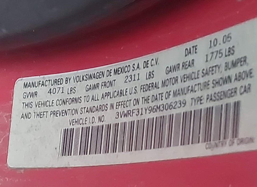 - VIN: 3VWRF31Y96M306239