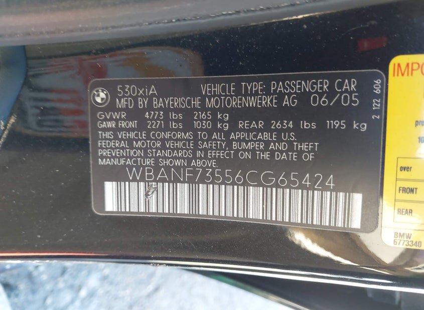 - Название лота: 2006 BMW 530XI