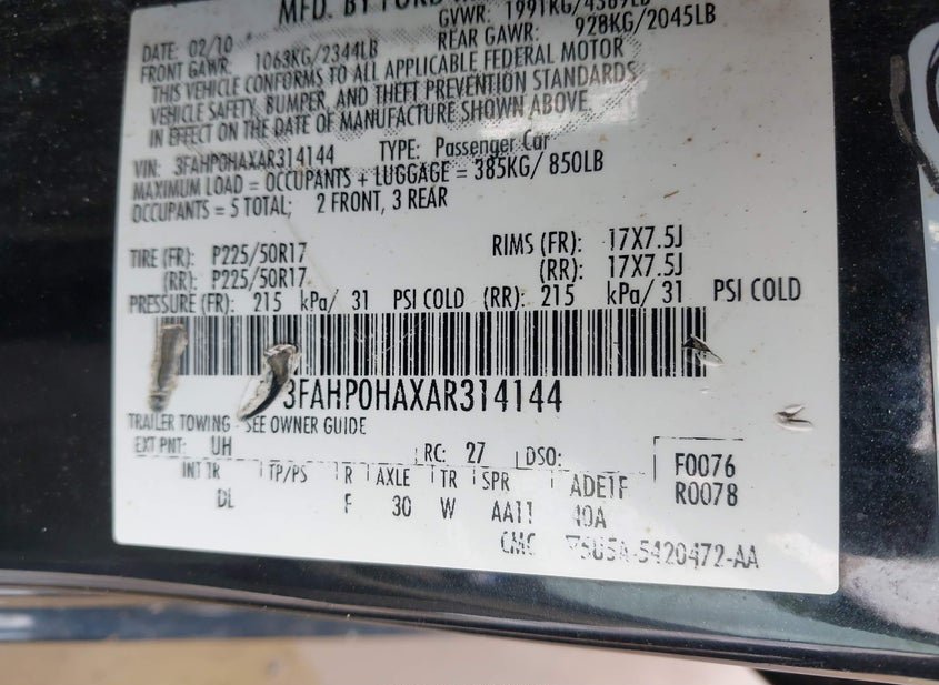 - VIN: 3FAHP0HAXAR314144