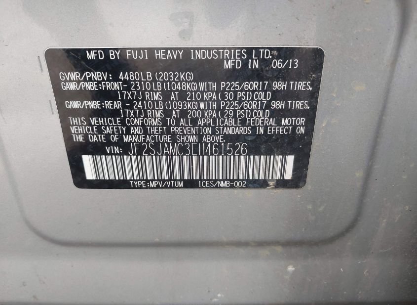 - VIN: JF2SJAMC3EH461526