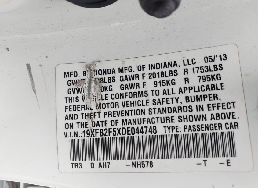- VIN: 19XFB2F5XDE044748