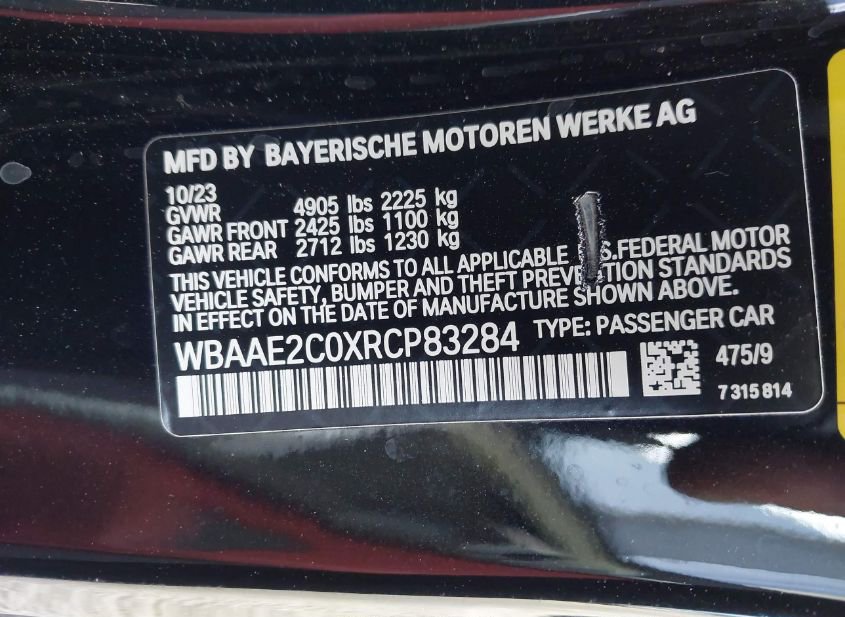 - VIN: WBAAE2C0XRCP83284