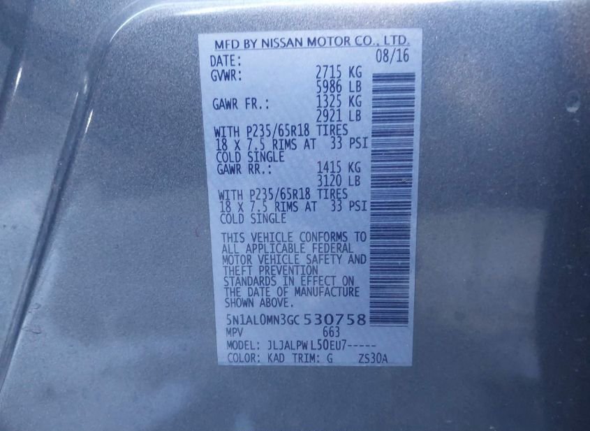 - VIN: 5N1AL0MN3GC530758