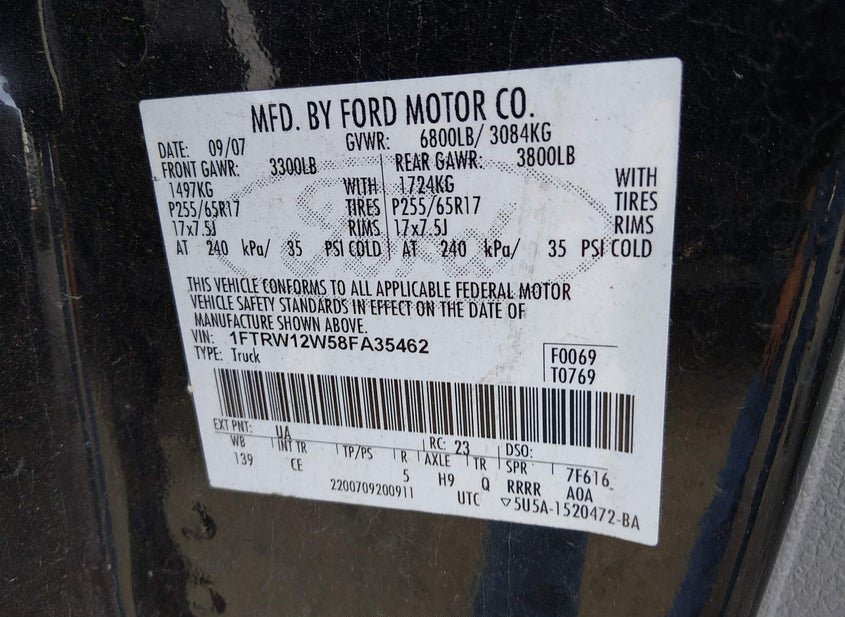- VIN: 1FTRW12W58FA35462