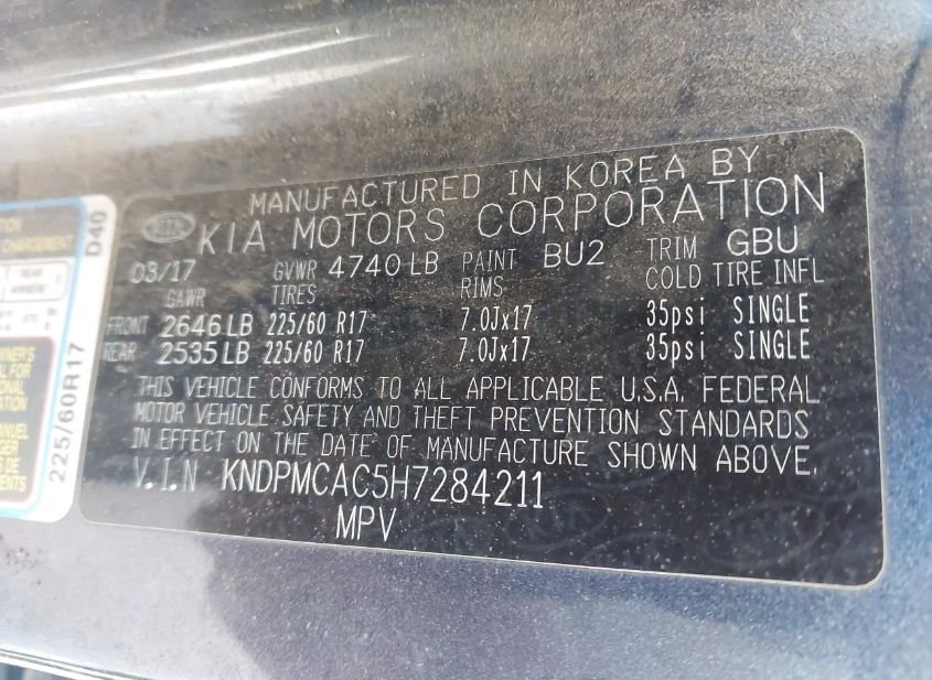 - VIN: KNDPMCAC5H7284211