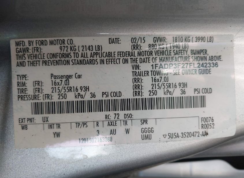 - VIN: 1FADP3F27FL242336