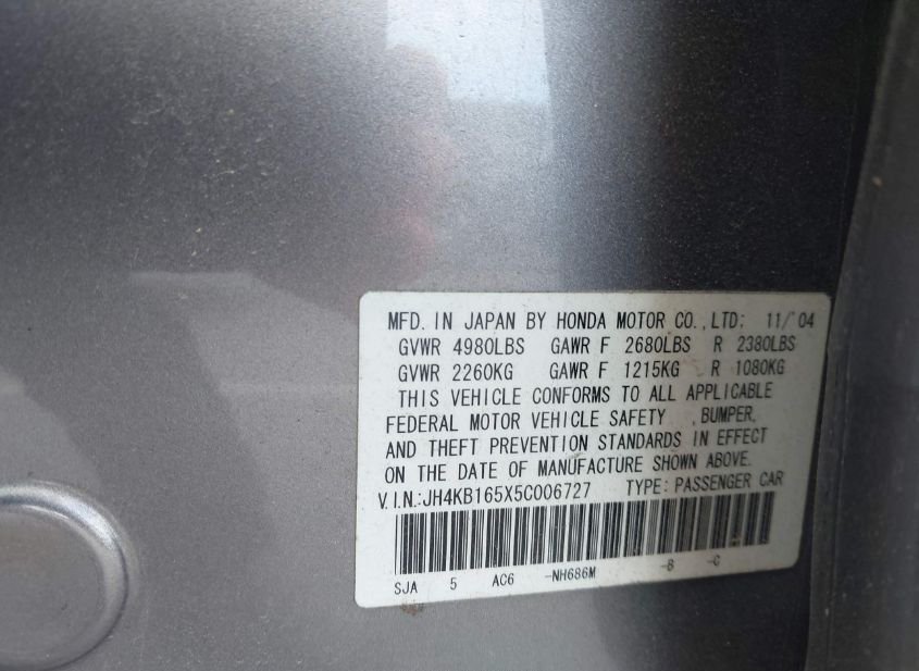 - VIN: JH4KB165X5C006727