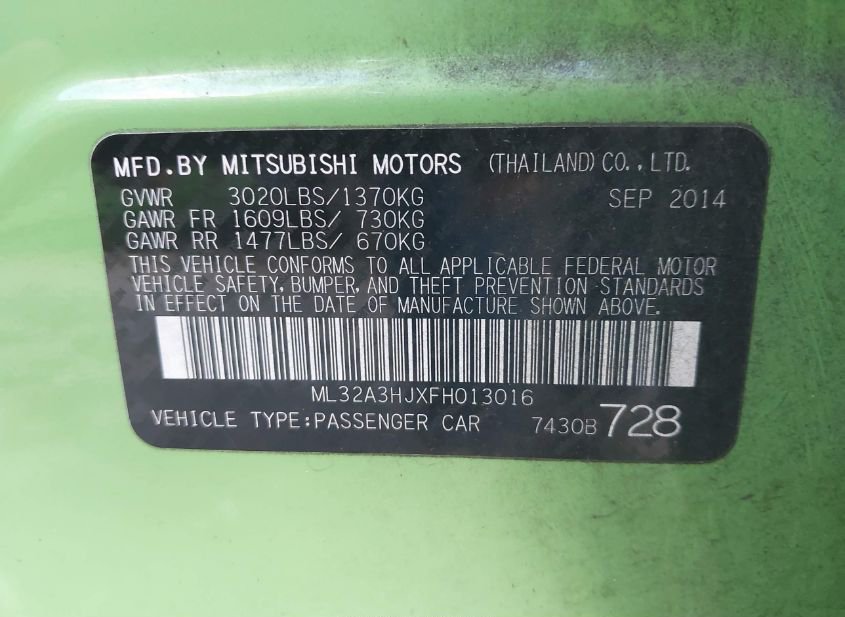 - Название лота: 2015 MITSUBISHI MIRAGE DE