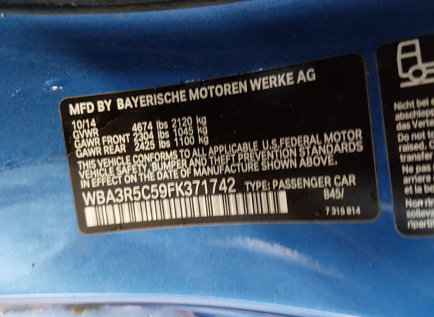 - VIN: WBA3R5C59FK371742