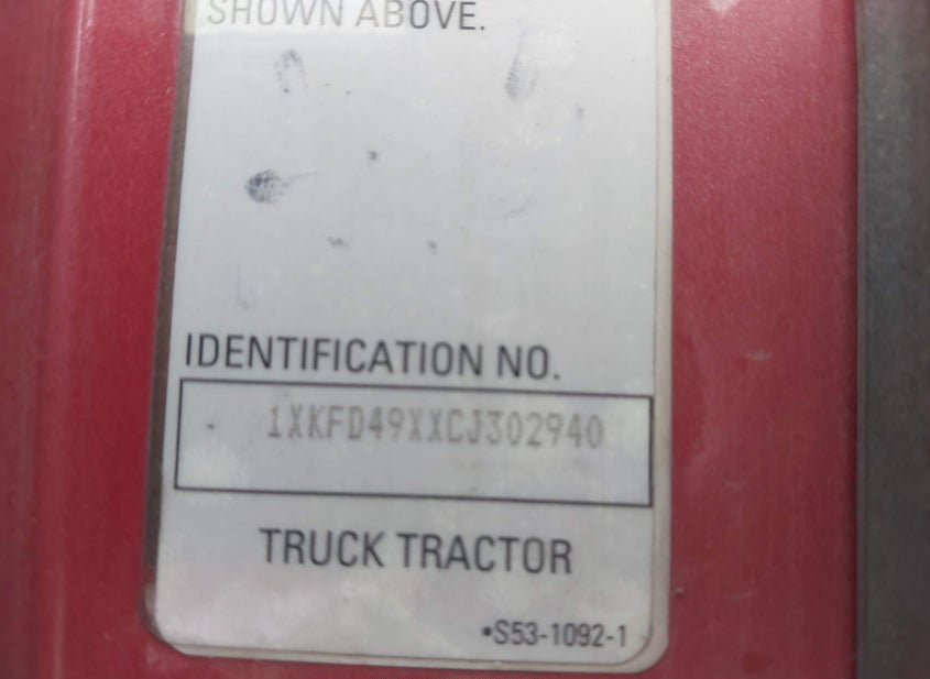 - VIN: 1XKFD49XXCJ302940