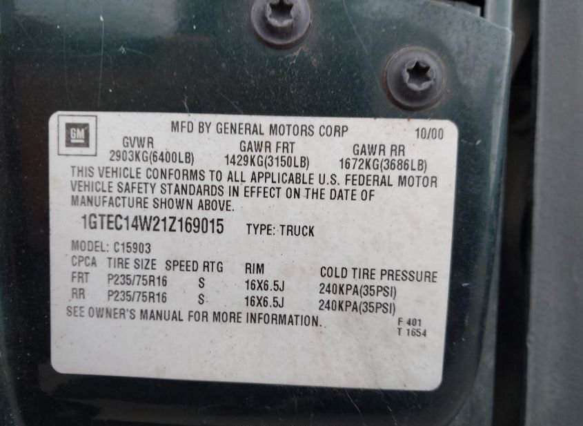 - VIN: 1GTEC14W21Z169015