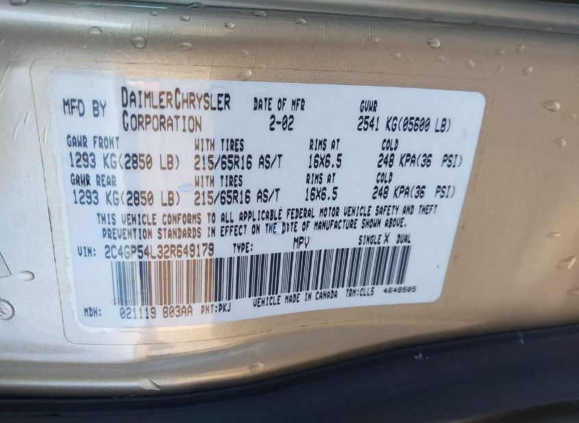 - VIN: 2C4GP54L32R649179