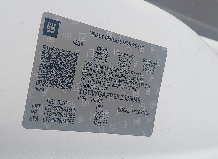- VIN: 1GCWGAFP6K1335048