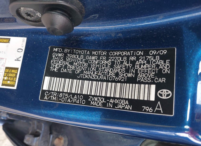 - VIN: JTDKN3DU9A1076921