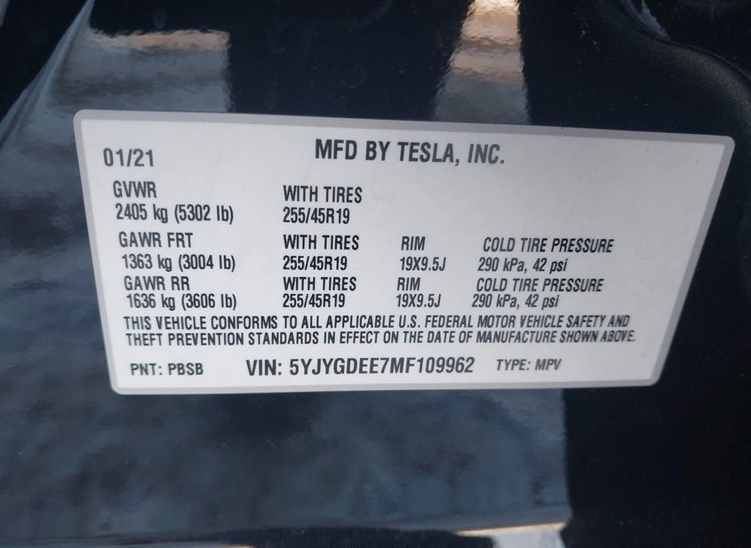 - VIN: 5YJYGDEE7MF109962
