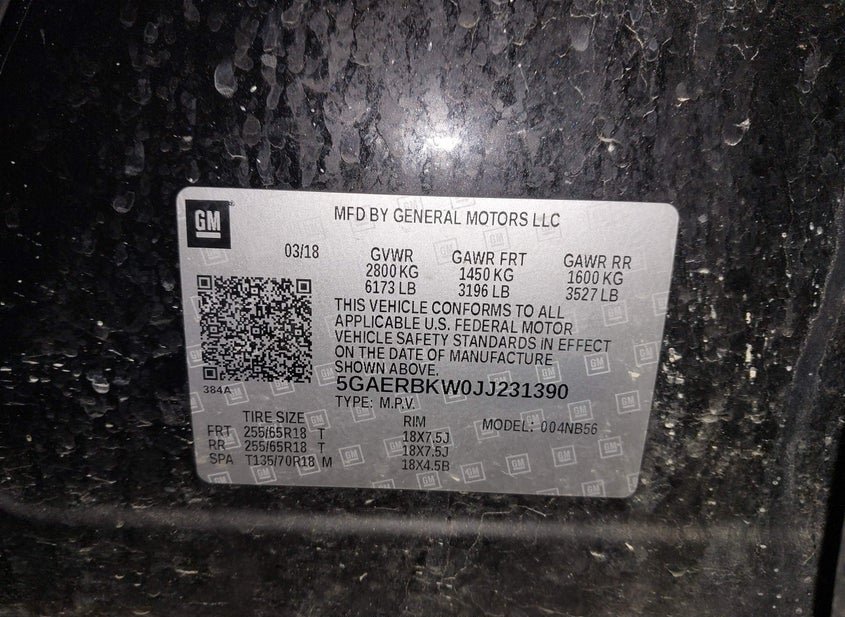 - VIN: 5GAERBKW0JJ231390