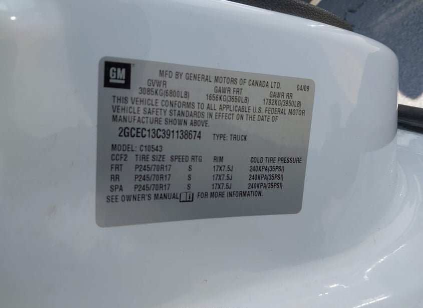 - VIN: 2GCEC13C391138674