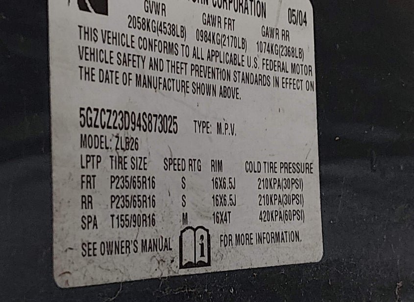 - VIN: 5GZCZ23D94S873025