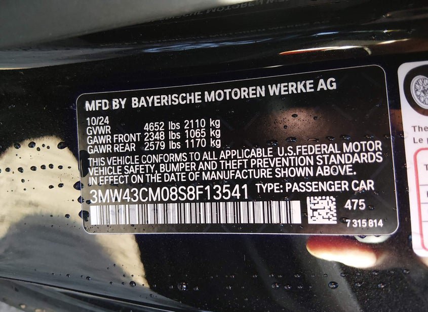 - VIN: 3MW43CM08S8F13541
