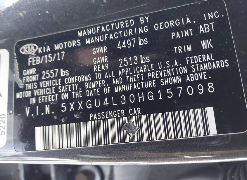 - VIN: 5XXGU4L30HG157098