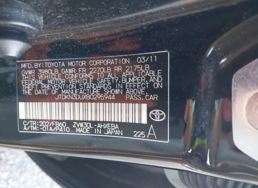 - VIN: JTDKN3DUXB0295944