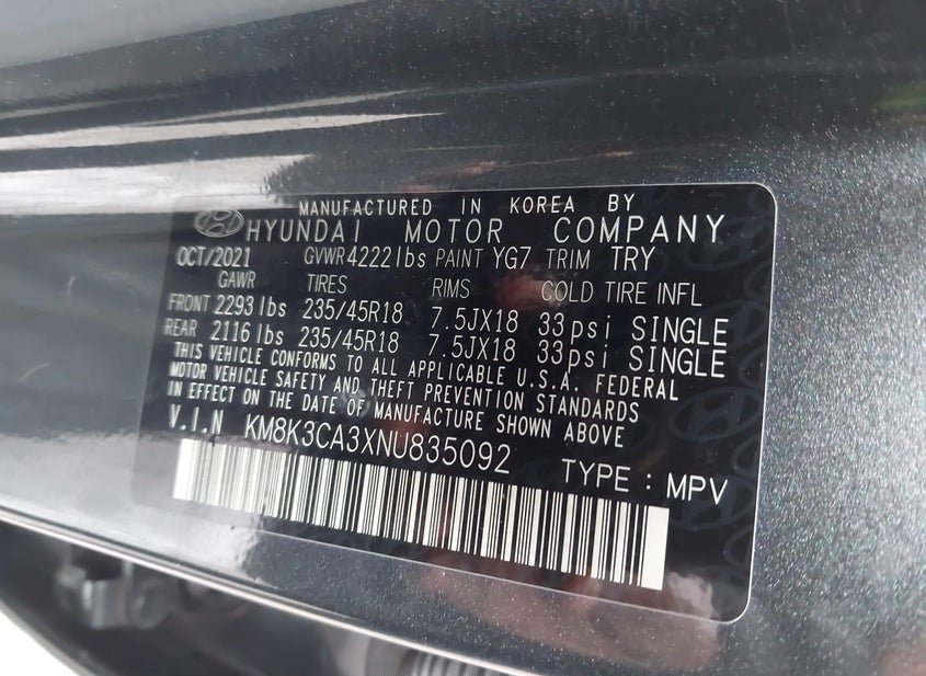 - VIN: KM8K3CA3XNU835092