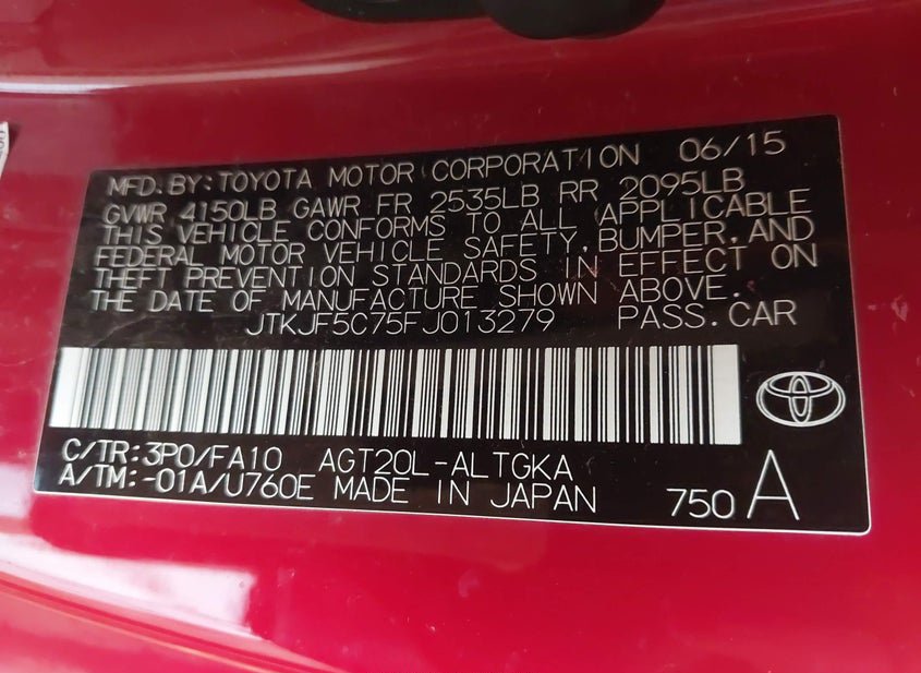 - VIN: JTKJF5C75FJ013279