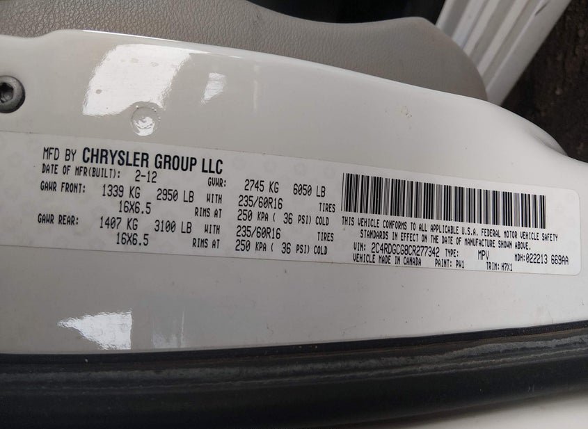 - VIN: 2C4RDGCG8CR277342