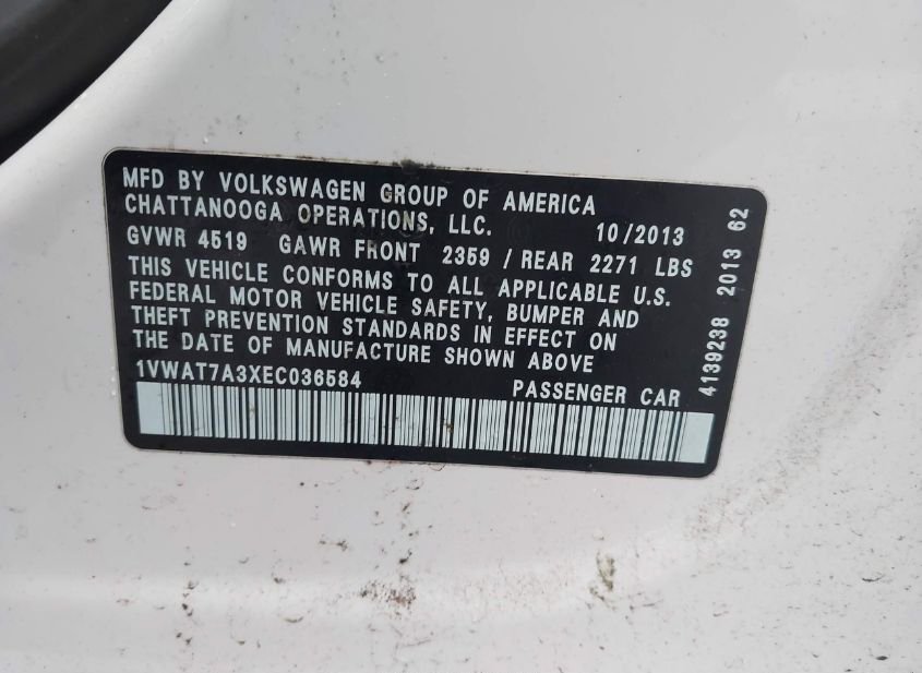 - VIN: 1VWAT7A3XEC036584