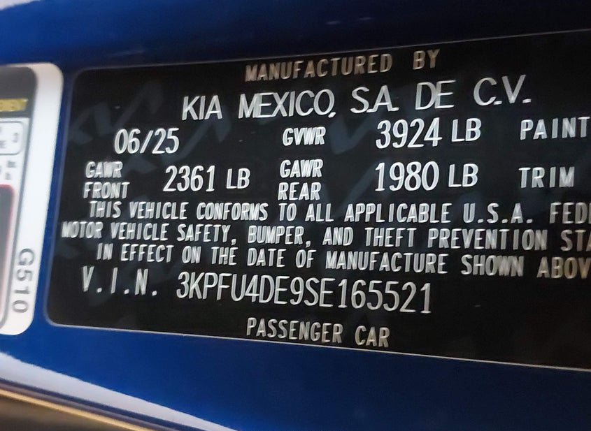 - VIN: 3KPFU4DE9SE165521