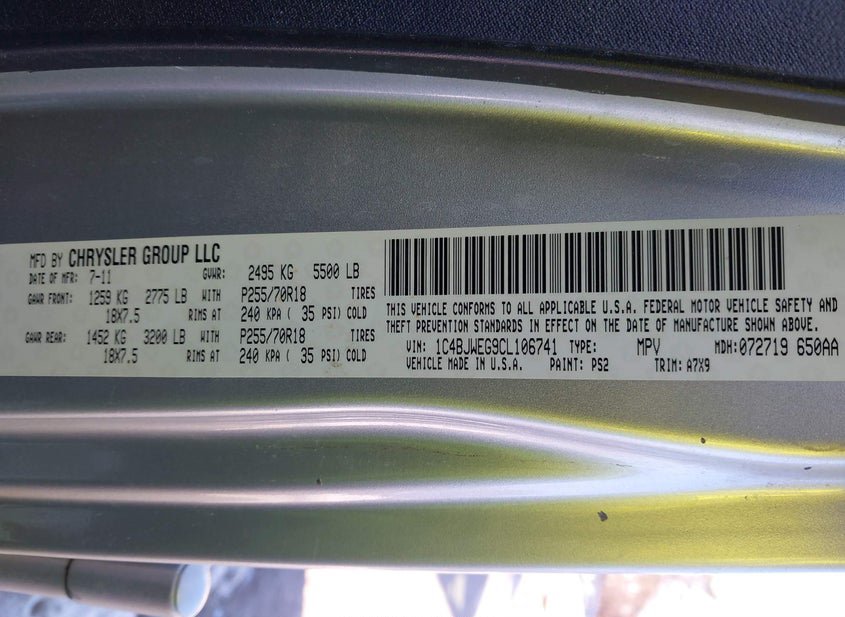- VIN: 1C4BJWEG9CL106741
