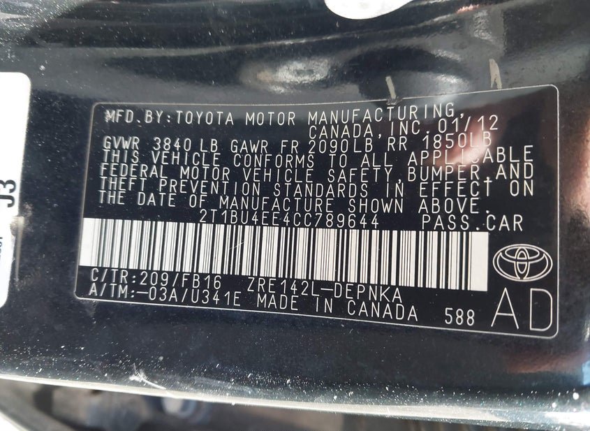 - VIN: 2T1BU4EE4CC789644