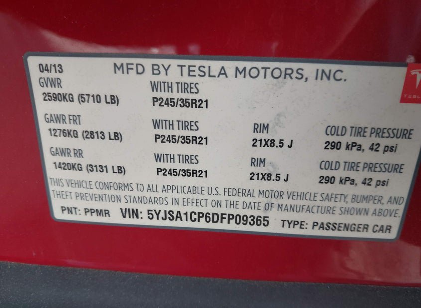 - VIN: 5YJSA1CP6DFP09365