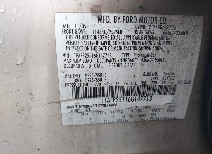 - VIN: 1FAFP25116G147713