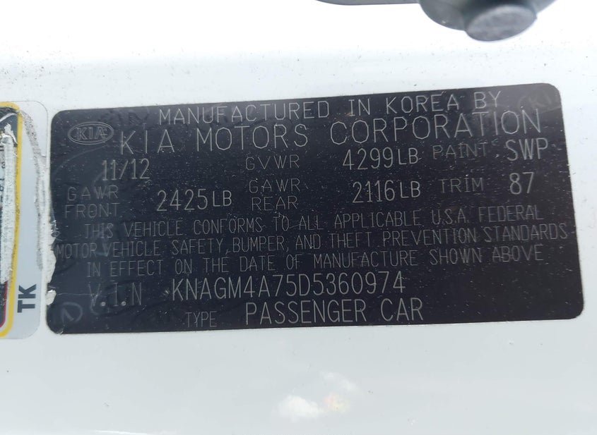 - VIN: KNAGM4A75D5360974