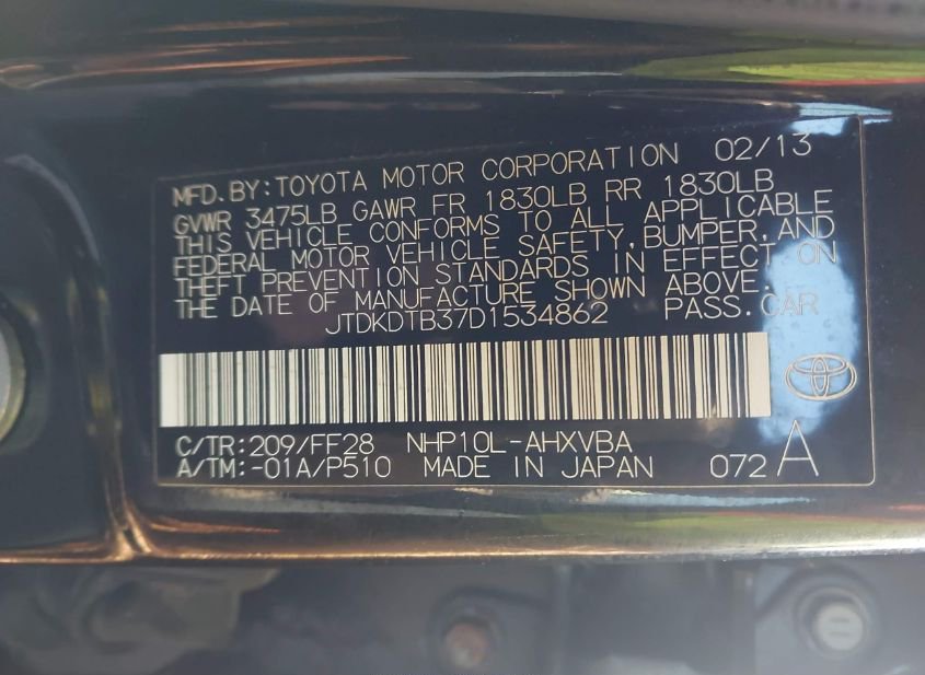 - VIN: JTDKDTB37D1534862