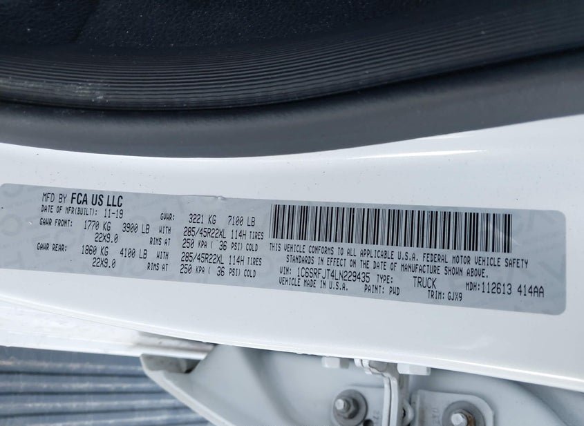 - VIN: 1C6SRFJT4LN229435